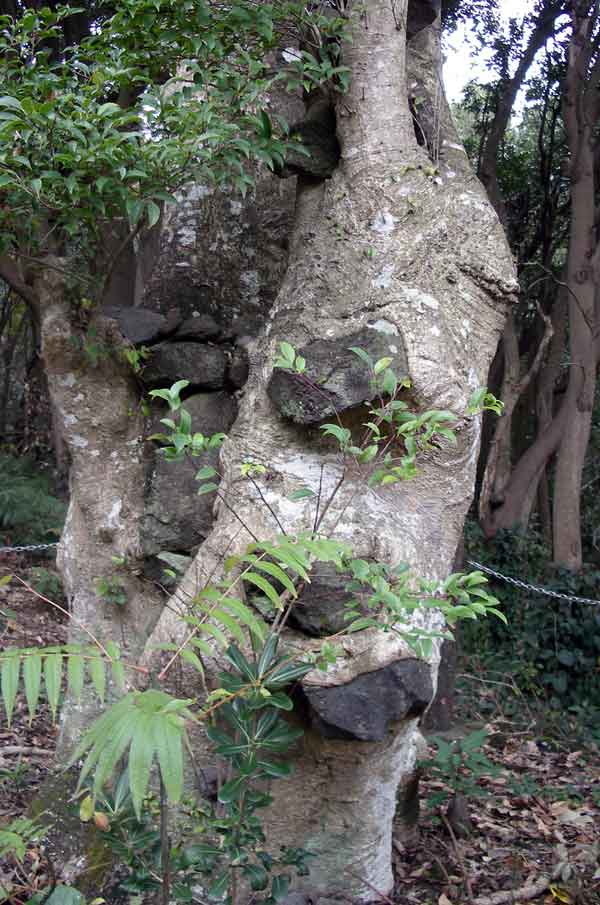 蓮着寺境内にある石食いモチの木。