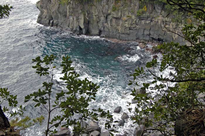 | 第5区は美しい城ヶ崎自然研究路の部分が長い。 階段やごつごつした石の坂が多い。 城ヶ崎海岸駅からの桜並木で、桜の根が歩道を押し上げている光景に驚いたが、どうやら、これはもともと大室山の大噴火で流れた溶岩がこの一体を覆っているからではないか。 土中に根が張れずに舗装を押し割っているのかもしれない。 この海岸の美しさもこの溶岩流によるものだそうだ。 だから、自然研究路もごつごつした岩で歩きやすくはない。 アップダウンもかなりある。 前回、1時間で5kmとのパンフレット表示はかなり無理があると書いたが、この道ではなおさらだ。 この全線ウォーク用マップには、この海岸沿いの5区や6区で右折か直進かなどの目標の記載が少ない。 何度か道を間違えるはめに陥った。 6区では、結果的には八幡野漁港の町の中で右折するのだが、その漁港の名前や漁港の存在すらまったく書かれてなくて、山中の道での右折であると思い込んでいた。 ルート上の標識はかなりあるのだが、マップに記載がないので、照合できない。 5万分の一の地図にも記載がない山道ゆえ、事前の準備と注意が必要だ。 崖道もあって危険がある。 伊豆急にはマップの改善をお願いしたい。 他の一般道路ルートの表示ではかなりよく出来ているのに残念だ。 |