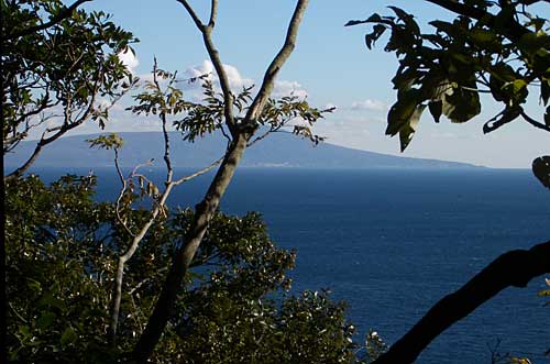 まっすぐな下り坂を行くと、突然、伊豆大島がすぐ目の前に