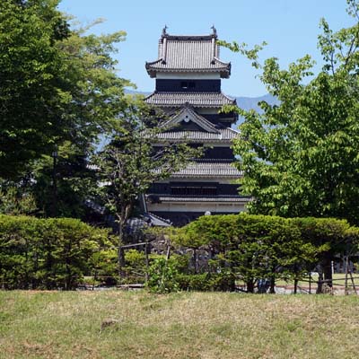 中町を通るルートでは、松本城が見えないことがわかって、 急きょ寄り道をして松本城をチラッとだけ見てきた。東からの姿である