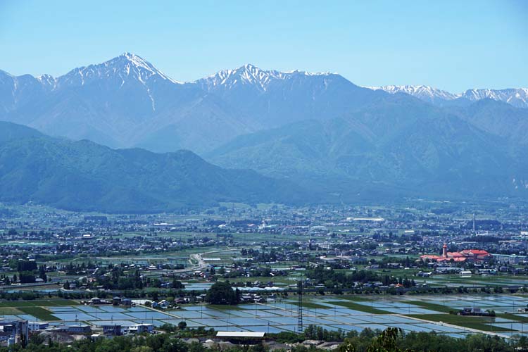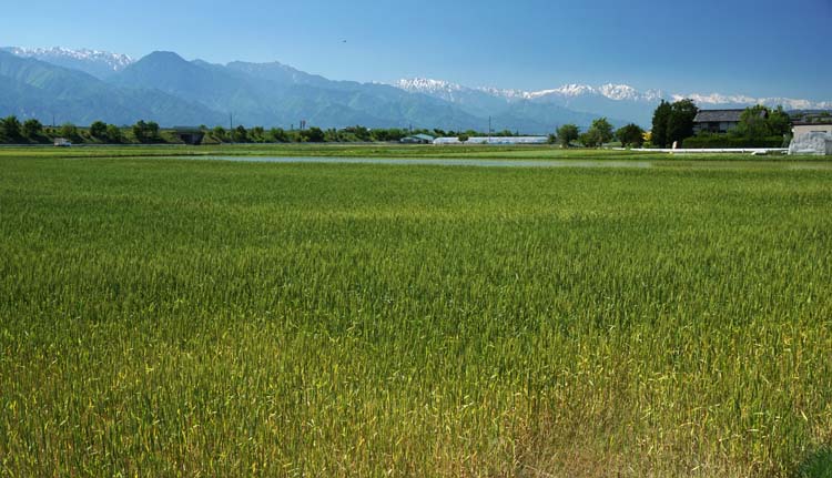 この景色を見たかったのである。常念岳を背景にした安曇野である |