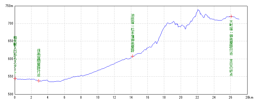 | 大町宿:御他屋跡付近 本日の終点 | 16:09:32 | 26.11km | 720m | ||