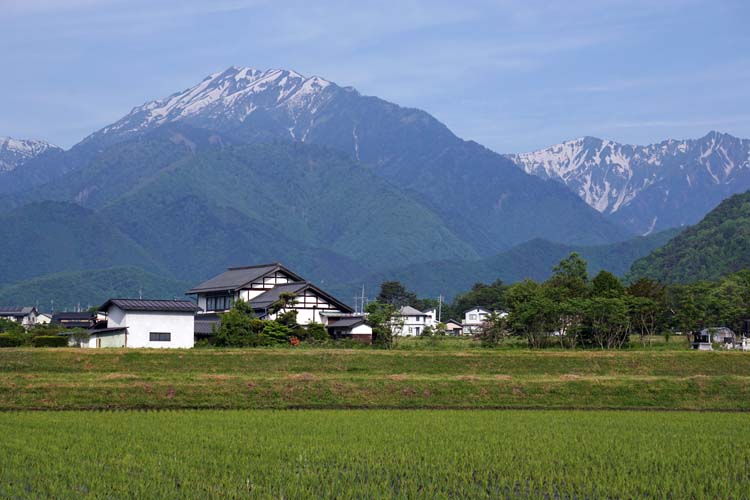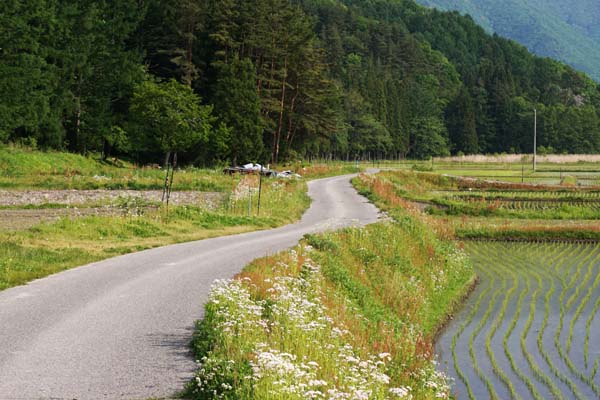 木崎湖に向かう道。こんな当たり前の道を、すばらしいと思う