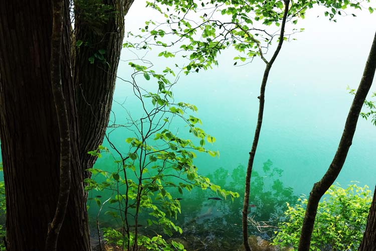 最深。湖底にかなりの湧水があるらしい。透明度が高くきれいな水である |
