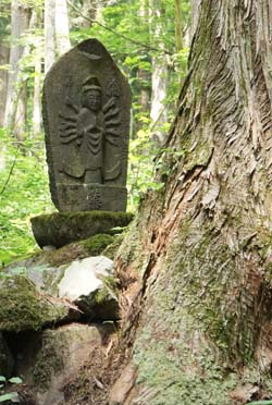 如意輪・千手・千眼・十一面・聖などの観音像である。中には一面十臂の像もある。豪雪地帯ゆえ、道しるべにもなっていたという。静寂な山中を歩いていて木漏れ日に浮かぶ石仏は美しい。安らぎが得られる気がした