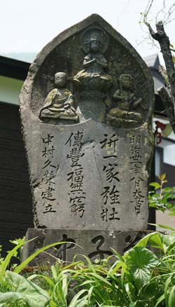 文字碑や青面金剛の庚申塔と馬頭観音が多いが、一家の安寧を祈願する祈念塔も見られる |