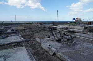 (左)糸魚川宿加賀藩本陣跡の無事だった表示板と加賀の井酒造の跡