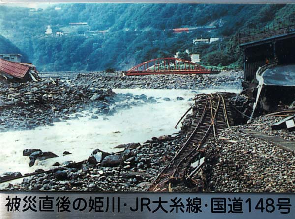 平成7年7月に豪雨による土砂災害(新)で国道の国界橋が落ち、大糸線が寸断された。