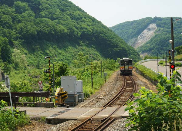江戸期以降の小谷村の災害記録によると、290年間に114回、明治以降に限ると130年間に96回もの土砂災害が起きているという。こうした土砂災害の跡に立ち、歴史を知っていろいろと感ずることがある。平成7年の姫川上流の大土石流で橋が落ち、線路が寸断された大糸線は2年半の工事で復旧できたものの、今、前回のような災害が起きたらもう再起できないのではないかと心配になるのである。今回乗った大糸線の糸魚川・南小谷間は非電化のJR西日本が運営する区間だが、1両だけの列車で、3時間に1本しかないにもかかわらず、乗客は観光客などわずかで、乗り降りがまったくない駅が半分以上だった。過疎化がさらに進んで地域の運営が困難になっていることは明らかであろう。これまで起きたような、想像を絶する大規模な土砂災害を人知の力で完全に抑えることは困難であろうし、膨大な費用がかかるはずである。過疎が進んだ地域で計算が合うのか、と思ってしまう。土地の方々には過酷な選択だが、安全な土地に移動してもらい、山河は自然の輪廻に任せた方がよいのでは、と思ってしまうのだ。後で読んだ「動くとき、動くもの」の青木奈緒さんも同じことを思ったようである。しかし、青木さんによると、専門家の意見は違う。上流部の小谷で砂防の手を抜くと、姫川の河口にある糸魚川の町に達するような巨大災害が発生するというのだ。それを防ぐために、地道だが膨大な防砂対策、治山対策が必要だというのである。そうなのか、そうかもしれない。この国には、こうした危険で厳しいところがいたるところにあるといい、この小谷村は、自然の猛威を人間に警告しているだけでなく、人間の知恵でここまでできる、と先人の努力や現代人の苦闘をアッピールする役を担っているようにも見える。そして、千国街道こそ、それを学ぶ格好の教科書かもしれない。