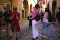 | チェコにどのくらいの日本人が住んでいるかは知らない。 最近、トヨタがチェコに進出してきた。 プラハから東へ約50kmほどのコリーンという町だという。 経済の活性化など、チェコ社会への影響は非常に大きいようだ。 すでに5月末に新小型車「アイゴ」を年間10万台規模で本格生産を始めたようだ。 そのために、日本人が120人来ているそうだ。 会社は、もともと町にあった中華料理店に頼み、訓練してそばやヤキトリなどの日本食を提供してもらう体制をとったとか。ノミニケーションで活性化され、アイディアを誕生させる日本人は、きっとこの社会にも影響を与えるだろう。 今回、現地ガイドとしてクトナー・ホラなどに付いて来てくれたTさんの、日本語のうまさにはみんな参ってしまった。敬語の使い方が日本人以上である。Tさんはプラハのカレル大学日本語学科を卒業したが、慶応大学にも1年間留学したそうだ。 まだ若い独身で、この程度の勉強期間でこれほどの外国語を話すのかと、愕然たる思いであった。 それは、さておき、このTさん、実はガイドは土日のアルバイトで、日頃は日本企業で通訳をしているという。 なるほど、と思う。 このところの日本企業の進出で、日本人グループ向けの観光ガイドの人たちが大勢通訳として雇われてしまい、ガイド役が不足して困っているそうだ。 そのせいか、今回もあるところで付いてくれた若くてきれいな女性ガイドさんは、明るくてまじめで一生懸命説明してくれたのだが、たびたび右と左が混乱してしまって、我々を朗らかにしてくれた。 まだ学生さんだったかと思う。 この国と日本のお付き合いがまだ浅いこと、日本語とチェコ語の両方を知る人が少ないということであろうが、それについて他にも楽しい例がある。 最近はたいていのところで日本語のガイドブックが売られている。 今回の旅の最大の目玉のチェスキー・クルムロフにも、当然日本語の地図やガイドブックがあって、当然それを買い求めた。 いろいろ面白いが、その中に、チェスキー・クルムロフの年表のページがある。 そこから、楽しい表現を、ちょっと引用させてもらうと、 ・・・・年 チェコソロバキア共和国は城がもらいました ・・・・年 城とシャトーの地方は国文化見物になりました これでもチェコ語やドイツ語のガイドブックよりずっといいや、というのが我々の感想であった。 |
