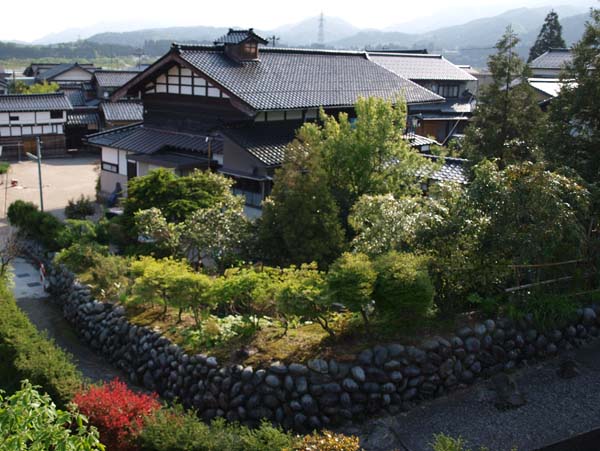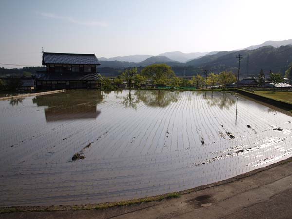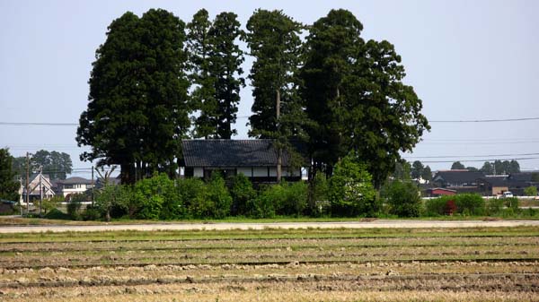 | この辺りに、散居村が広がっている map で地図や航空写真を見ると散居村の特徴がわかる mapの上部ボタンで「航空写真」を選び、左のスライダーを上から4番目程度にして拡大、右のマーカーリストにある 「散居村を行く」をクリック |