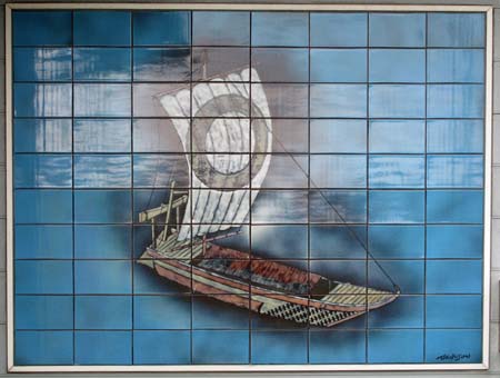 | 塩津の集落の入口に交番があった その外壁に貼られたタイルは「丸子船」であった | |||||||||||||