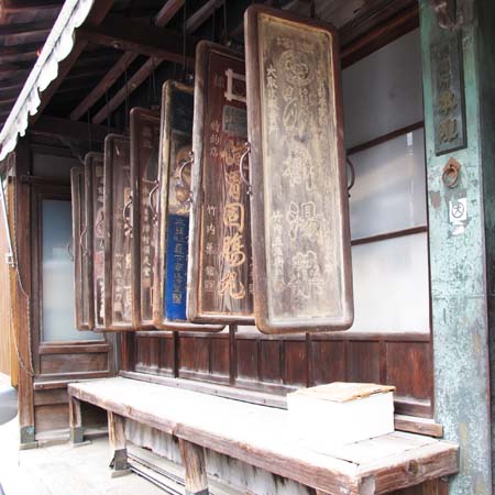 | この本陣がこの日の終点である。 くすりの広告板が、懐かしい。 この本陣の先々代のご当主は日本の薬剤師免状第1号を取得した人だという |