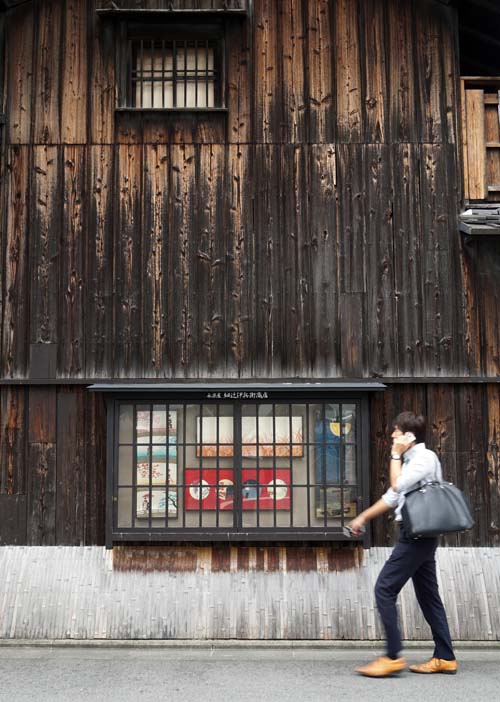 | 室町通りを行き、 御池通りを渡ると、創業400年の老舗「てぬぐい」の永楽屋がある すぐ近くにある永楽屋のRAAKブランド店で買い物をした |