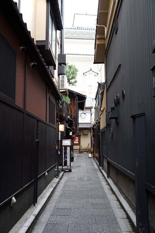 | 大国町通りに多い路地を散歩してから、六波羅蜜寺を覗き、建仁寺境内を抜けて、花見小路に出た。 とたんに、ものすごい数の観光客で溢れていて驚いた。和服姿の男女が多いが、ほとんどが外国人のようだ。 急ぎ雑踏を抜けて、祇園で静かな道を探した |