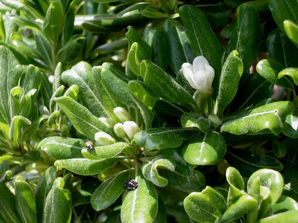 トベラ。 若葉に白い花が開花寸前である