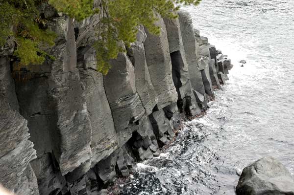 れて出来たという見事な柱状節理