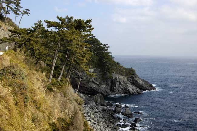 海岸への下り坂がきつかった。 300mをいっきに下る坂は、登り以上にきつく、腰に痛みが走った。