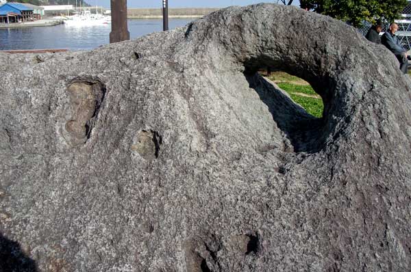 穏やかな稲取港である。 船をつないだ「もやい石(舫石)」が文化財として展示されていた。