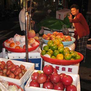 嘉義の夜店で。 手前左の果物は「蓮霧」