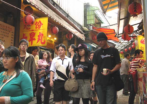 旧道から基山街に入ると身動きできないほどの混雑である