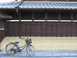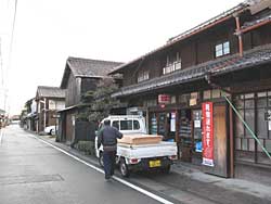 藤堂高虎がひいきにしていたという、「なが餅」の笹井屋に立ち寄った。 朝食を食べすぎたので、昼抜きのつもりだったが、多少のエネルギー補給ができるようにと、一個90円という有名な「なが餅」を1、2個買おうと思ったのである。 しかし、ばら売りはしておりません。 7個入りも売り切れました、という。 朝9時半なのにである。 幸い、その先にあった支店で「7個入り」を買うことが出来た。 四日市、日永地区の名物で、東海道屈指の銘菓とも云われる。 昼、内部川の土手下にある公園で、マメの治療をしたあと、寒風にふるえながら冷たいお茶といっしょに、なが餅をつまんだ。 上品な甘さに納得した。 わびしい昼食ではあったが。