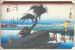 広重の石薬師宿の図は、宿の名前のもととなった石薬師寺の山門と、農家の屋根が