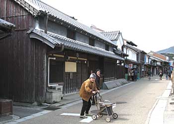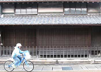 たびたび書いたことであるが、西に向かうにしたがって、伝統的な建物が増えてきた。 鈴鹿峠を越えると、ベンガラで塗られた連子格子や板壁、柱が次々に現れて、京都に近づいたことを実感する。 建物の形のちがいなど、歩くにしたがって伝統の継承や文化の移動という部分に興味が沸いてくる。