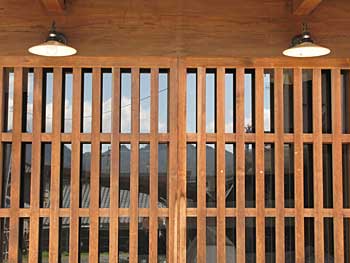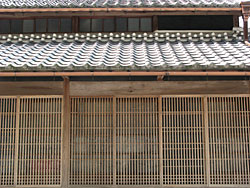民家の連子格子では、合理化したのだろうか、断面が四角の木材をそのまま素直に並べている。 東海道沿いで注意深く見たつもりだが、寺社のように45度まわした例を見なかった。