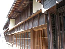 例えば、その美しい姿で街道の景観の主役を務めている「連子格子(れんじこうし)」は、もともと寺社建築の連子(れんじ)窓からきていると思われる。 寺社建築の連子窓は、連子子(れんじこ)すなわち断面が三角形の木材か、断面が四角の木材を45度まわしたものを並べる。 横から見ると三角の木材を使ったように見せるのである。