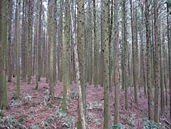 人影のまったくない杉林は、方向を見失いそうで、盗賊が出ても不思議ではない落ち着かないところであった