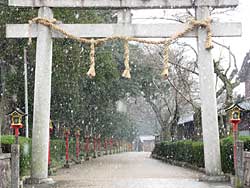 鈴鹿峠で晴れていた天気が、この土山宿入口に至って、なんと雪になってきた。 「土山春之雪」である