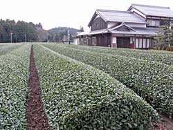 急坂を登り、階段で息を切らすと、意外にフラットな鈴鹿峠である。 ここを越え、林を出ると美しい茶畑であった。 ここはもう滋賀県、近江の国である。 近江土山茶の畑である。 鈴鹿峠で天気ががらりと変わるといわれる。 「坂は照る照る鈴鹿は曇る、あいの土山雨が降る」と馬子唄に歌われる。 土山に入って雪になった