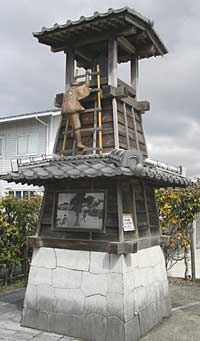 水口の柏木公民館前にあるカラクリである。 たまたま声をかけて下さった方に教えてもらった。 左の櫓の扉を開けると自動的に中のカラクリが動き始める。 街道沿いでかんぴょうをむいて干しているところである。 水口はかんぴょうが名物で、広重の保永堂版水口はこのカラクリの風景である。 東海道歩きの方は、ぜひこのカラクリを見逃さないように