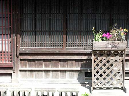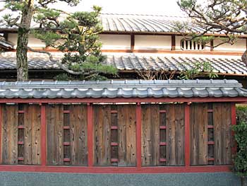 ベンガラと無塗装の板との不思議な組み合わせに見える。 これと同様の色使いの塀が他にもあったから、デザインパターンのひとつなのだろうか