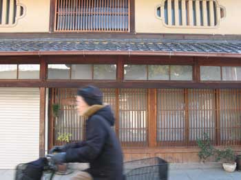 つし二階建ては、安定感のある造形的バランスが見事だと思う。 そして、二階の塗籠め壁や虫籠窓などの漆喰部と、一階の連子格子や板壁などの木部とが、まるで異次元的な質感の組み合わせによって、絶妙な美しさを生んでいるように感じる。 そして現代においても、この美しい形を積極的に使おうという動きがあるのではないか。 あるいはすでに、モダンな建築デザインのひとつとして確立されているのではないか、だから、宿場以外にもこのように拡がっているのではないか、と思い始めたのである。 伝統保存の努力だけではなく、現代にも通用する新しい形へと、ごく自然に変身しているのかもしれない。 新しい文化として生まれ変わったのかもしれない。