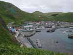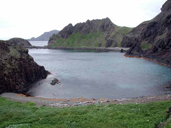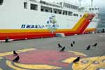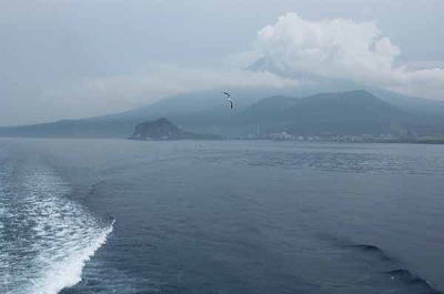 | いよいよ礼文島である。 利尻島鴛泊港から礼文島香深港まで45分程度である。 見送ってくれる利尻富士は実に均整のとれた、かつ堂々とした姿である。 例によってデッキに出る。 また、カモメが編隊を組んで乗客が伸ばした手から次々にえさをもらっている。 昨日の稚内発のときより数は少ないようだ、と見ると、昨日はいなかったカラスが来ている。 カモメと違って編隊を組んで、上手に輪を書くように飛んで、というわけには行かぬようで、とうとう、マチマチに船の手すりにとまり、床に下りて乗客から直接もらい始めた。 東京近辺のカラスよりも慣れているようだが、強引に袋を狙ったりするような悪さはしない素直な性格のようだ。 すぐ目の前の手すりにとまっているカラスも穏やかにこちらを見ている。 はっと思い出した。 さっき、鴛泊港でこの船への乗船を待つ間、我々の行列のすぐそばににカラスの群れがいたことを。 彼らは餌をねだる風でもなく、あちこちを向いて静かにしていた(上左の写真)。 どうやら今ここにいる彼らはあのカラスたちだったのだ。 この船への乗船を我々同様に待っていたのだ。 行列を作るのは下手だが、おとなしく待っていたのだ。 しかし、カモメは船についてきても疲れたら波に浮いて休みながら帰ることも出来るが、カラスは水に浮くことが出来ない。 だから、早く帰らないと帰れなくなってしまう。 なのに、彼らは慌てる様子がまったくない。 手すりや救命ボートの金具にとまって悠然としている。 デッキで彼らに餌をやっていた人たちが言い出した。 彼らは無賃乗船だ、と。 どうやら、彼らは途中で引き返して利尻島に帰るつもりなどさらさらないようだ。 心配になってきた。 この先、着いた礼文島から、また船で利尻島に帰るのだろうが船便があるだろうか。 船の時刻表を調べてみた。 やはり、今日はもう鴛泊に帰る船はない。 礼文島に一泊して明日帰るのだろうか。 今、カラスたちは子育ての季節のはずだ。 カッパエビセン欲しさに一夜、家を開けるとは情けない話である。 だが、さらに調べてみると、利尻島で鴛泊の反対側にあるもうひとつの港、沓形港への便が30分後にある。 彼らはそれを知っていて、沓形に戻ってから陸伝いに鴛泊に帰るのだろうか。 もしそうなら、大変な利口者である。 しかし、ちょっと待てよ、彼らは本当に利尻島のカラスなのだろうか? ひょっとすると、実は礼文島のカラスで、今、利尻島から帰宅の途中ではないのか? などと、楽しませてもらっているうちに、懐かしい礼文島がもう目の前にある。 |