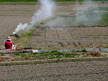 蔵造りの商家が増えてきた。川越に見られるあの厚くて立派な瓦の棟を載せたがっしりした建物である。 川越の蔵造りは、火災の反省から出来た防火建築と聞いたが、距離的に近い鴻巣あたりにもそれが及んだのであろう。 町を抜けると,、ところどころで畑が広がるようになってきた。 中山道を歩き始めて初めて見る畑は小さかった。 しかし、やっと大都会の喧騒から抜け出そうとしていることを感じてホッとした。 遠くには秩父の山も見えてきた。