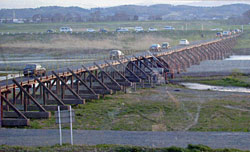 国土交通省からもらった中山道の地図は、下流に出来た新しい橋ではなく、この仮橋のままである。 混乱した