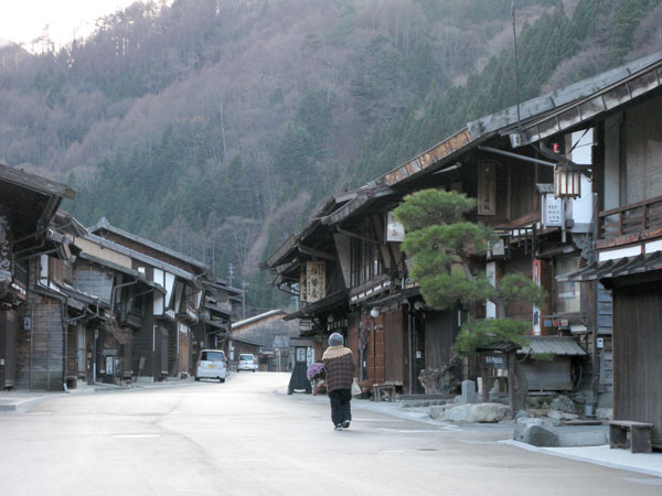 最近、木曽から伊那に抜ける権兵衛街道にトンネルができた。 おかげで、この11月、12月という季節はずれにも、奈良井に立ち寄るお客さんが来るようになったそうだ。食堂は忙しいらしい。 電柱を取り払い、美しい景観が残されただけでなく、インフラも整備されたのだろう。 マイナス17℃になるという厳寒期にも耐えられる上下水道がしっかり働いて、この民宿のトイレも暖かいウォッシュレットであった。 見かけは昔のままても、この木曽路もどんどん時代が変わっているのである。