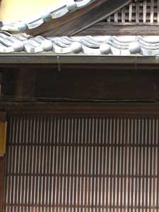 少しばかり格子について調べてみて驚いた。 手元にある本の、格子の写真説明から拾っただけでも、「格子」の入った単語や格子を使った窓などの用語がたいへん多いのである。 「べんがら格子」、「連子格子」、「千本格子」、「出格子(窓)」、「木連格子」、「しし窓」、「無双(連子)窓」、「切子格子」、「小間返し格子」、「吹寄格子」、「面格子」、「平格子」、「舞良格子」、「吊り格子」、「物見格子」、「人見格子」、「仕舞多屋格子」、「倉敷格子」、「狐格子」、「京格子」、「江市屋格子」、「問屋格子」、「丸太格子」などなど。 構造を表すもの、目的を表すもののほか、地方色を感じさせる名も多い。 にもかかわらず、「竪繁格子」なる語はない。 そこで、竪繁格子であるという下諏訪の格子の写真と、書物にある数十枚の格子の写真を比較して、形の上での違いを探してみた。 そして気付いたのは、「竪繁格子」 は、竪(縦)の組子(竪子、縦桟)が密度高く組み込まれ、すき間(空き)が少ないのではないか、ということであった。 まさに文字通り、ということなのだが。 そもそも「連子格子」とは何か。 明治以前の諸文献を引用して、明治時代に編纂された「古事類苑」によると、「格子ハ、・・・・、其用ハ屋ノ内外ヲ防隔スルナリ。 格子ノ制作ハ角木ヲ縦横ニ組ミタルモノニシテ、其細密ナルモニ至リテハ、僅ニ明ヲ取ルニ足ルノミ。 ・・・・猶ホ転ジテハ、木ヲ縦ニ連ネテ櫺子(れんじ)ニ作リタルヲバ専ラ格子ト称シ、・・・」(増田 正:「壁・窓・格子」、株式会社グラフィック社) とある。 また、倉敷市文化財保護課のWEBページによると、「連子格子」とは、「竪子の幅の1から3倍の空きをとった格子」を云うらしい。 もうひとつ、格子を利用した建具である障子について、その組子による分類に 「竪繁障子」 と 「横繁(よこしげ)障子」 があることを知った。 竪子と横子のどちらが多いか、という区別である。 関東では横組子の多い 「横繁障子」 、関西では縦組子の多い 「縦繁障子」 が好まれるという。 もしも、格子の場合も単純に、この障子と同様のことをいうのであれば、街道で見てきた連子格子は、どれも「竪繁格子」ということになる。 なお、「横繁格子」に相当する、横子中心で出来ている格子は、上に並べた格子の呼び名のうち 「舞良格子(まいらこうし)」 がそうである。 そこで素人判断である。 「連子格子」 の中でも、空きの小さい (1:1などの) タイプを 「竪繁格子」 というのかもしれない。 少なくとも、「竪繁格子」 は 「連子格子」 と称される格子のうちの一種でではないか。 しかし、腑に落ちない。 東海道歩きのときに撮った写真を改めて調べてみると、東海道の途中でも、京都でも、こうした比率が1:1程度の緻密な格子があちらこちらで見られるのである。 しかし、これらを 「竪繁格子」 と呼ぶ場面には出会わなかった。 下諏訪独特、あるいは木曽独特というが、それがどの部分なのかがわからない。 そして思った。 京都の町家で流行した格子が、日本の風土と日本人の美意識にマッチして、宿場だけでなく、農村や山村にまで広がったと云われる。 格子は、その美しさと機能的合理性から、様々な用途目的への展開や、気候に合わせて、あるいは建物の形、機能との調和に向けて、各地で独自に進化、洗練されてゆき、その地方独特の形が生まれたのだろう。 そして、その土地独特の呼び名もごく自然に生まれたのであろう。 「格子」を使った用語がたくさんある理由のひとつは、ここにあり、「竪繁格子」 もそうに違いない。 下諏訪、木曽路独特であるとの理由は、単に竪格子の空きの大きさだけではなく、こちらがまだ気付いていない、微妙な特徴があるのかもしれない。 あるいは、結果的に形は他と似ていても、木曽や下諏訪の風土のもとで、地元で独自に工夫され、洗練されてきた成果だからそういうのだろうか。 興味は尽きない。 格子は、美しさだけでなく、そのものの本来の役割である通風と採光、そして戸締りの機能を追って、実に多彩なバリエーションがある。 例えば、採光のために格子の上半分の竪子の数を減らした「切子格子」の工夫は見事で美しいし、縦子の間隔に変化を持たせた「吹寄格子」も典雅である。 また、格子の裏に、簾を懸けたり、障子を立てる工夫が、飛騨高山の洗練された美しい町並みを強く特徴づけているように思う。 高山の格子は、簾や障子との組み合わせをデザインの基本としているためだろう、竪子の密度は大きくない。 空きの大きい格子であることが特徴ではないだろうか。 一方、下諏訪や、あるいは近江路、京都の、そう呼ばれているかどうかは別として、空きの少ない竪繁格子は、格子自体の緻密さが、格子自体の繊細さと格調を生んでいるように思えてきた。 これまでも、格子が街道の雰囲気を盛り立てる主役だとは思いながら歩いてきたが、改めて注目してみると、多くは素朴であり、