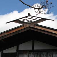 | 下諏訪宿を出て、岡谷、そして塩尻峠を越えると立派な大きな屋根の家々が現われる。 これらはどれも本棟造りである。 あるいは大破風造りとも呼ばれ、信州の松本平、木曽谷そして伊那谷に多い。 江戸時代には庄屋や本陣など、上級の民家だけに許された、特権的な形式という(川村善之:日本民家の造形、淡交社)。美しく、実に見事な建物である。 その大屋根の正面屋根構えの頂点に、棟飾りが据えられている。 その名は、「雀おどり」、「雀おどし」、「烏(カラス)おどし」、「烏どまり」とさまざまである。 中山道も、まだ東の地方を歩いていたときにも時々現われ、そのころは「烏(カラス)おどし」と聞いていたように思う。 調べてみると、規模の大小や形によって呼び名が変わるという。 しかし、どんな形をどう呼ぶのかは分からない。 翼を広げたような形では、鳥(トリ)が踊っている、あるいは躍っている姿にたしかに似ているようにも思う。 一方、このような建物の飾りには、もともと、実用的な意味があったのではないかとも思う。 そうだとすれば、厄介もののカラスを追い払う意味の方が納得できるのだが、などと考えながら歩いた。 帰って調べてみたら、住んでいた子供の頃の記憶にはないのだが、「雀踊り」なる踊りが、仙台の夏の祭で踊られることを知った。 また、「小躍り」と同じ意味で「雀躍り」という喜びを表す言葉もあるし、雀の踊る姿が象徴的に使われることがあるのかもしれない。 なお、「雀おどし」で検索してみると、田圃で爆音を鳴らして雀を追い払う道具のことが書かれたサイトが多いようで、さほどの他の意味はなさそうである。 下の写真は、今回の中山道歩きの下諏訪-洗馬間で撮ったものである。 特に、一番上の棟飾りは国の重要文化財である堀内家住宅の大屋根にあるもので、このデザインは最高傑作とも云われる。 巨大なその姿は迫力満点である。 巨大で迫力のある棟飾りであるから、踊っている姿として、雀では可愛らしすぎるような気もする。 これらの飾りは、なぜ、どのようにして生まれたのだろうか。 ちょっと調べただけでは分からなかったが、大社造り(出雲大社)からきているのではないかという意見があるようだ。 二本の垂木を交差させた二組の千木(ちぎ)が屋根の両端にあるのだが、これはたしかに、下の写真の2段目の左、あるいはその右端の単純な飾りに似てはいる。いや、大社造だけではない。神明造り(伊勢神宮)や住吉造り(住吉神社)にも千木がある。 何といっても、格式を象徴する棟造りの飾りである。 だから、神社建築から来ているということも或いはあるのかもしれないと思う。 さらに遡るならば、あるいは別の見方をすれば、古代、丸太を二本合わせ、上部を縄で縛って屋根を作ったときの名残だろうか。 信州南部の、この立派な本棟造りと見事な棟飾りは、信州における木の文化を示す代表例であろう。 中山道歩きの収穫である。 |