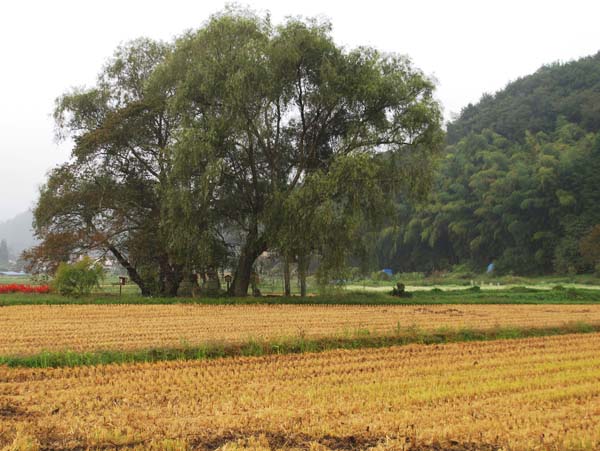 | 芦野の遊行柳 奥州街道歩き最大の楽しみであった。何代目かの柳が巨木に なっていた。 西行と芭蕉、蕪村の歌碑、句碑の前も静かだった。まだ朝6時台である ・道のべに清水流るる柳陰 しばしとてこそ立ち止まりつれ 西行 ・田一枚植えて立ち去る柳かな 芭蕉 ・柳散り清水かれ石ところどころ 蕪村 |