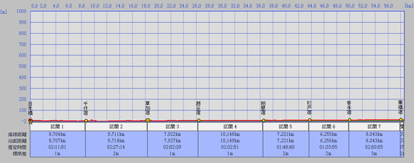 今回の区切りと考える栗橋まで、ルートの標高をグラフ化して驚いた。まったくフラットで、68キロメートルの間で、標高差はたった10メートルしかないのだ。さすが大平野である。