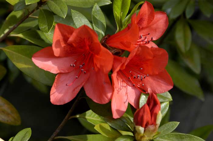 | 掲示板上で、仲間と四国のアケボノツツジの話題が弾んだころ、我が家では「ケラマツツジ」のつぼみが膨らんでいました。 今朝、5時半に起きて、見ごろになったポピーの写真を撮りにでかけ、帰ってきたら、このケラマツツジが咲いていることに気づきました。 庭には他に、ごく当たり前にどこにでもあるオオムラサキツツジ(家内は駄花といいますが、きれいです)、名前不明の白ツツジ(これは今年見事な咲きっぷりでした。 2種類、3本あります)、ドウダンツツジ、そして、このケラマツツジ、さらにミヤマキリシマ(鉢植え)、と狭いのにいろいろありますが、ツツジでは、このケラマツツジがもっとも遅咲きです。 |