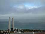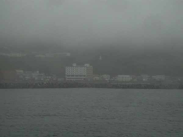 | 58年前のあの家、転がり落ちた崖はどこだろう、と探るのも今回の旅の目的のひとつであった。 どうやら、記憶にある地形や学校の位置から、今回宿泊した香深のホテルにほど近い東海岸ではないかと思われた。 3日目に、スコトン岬に行くバスの最後部から観察し、さらに最終日である4日目の朝、散歩しながら確認したところである。 もちろん、道路や建物が出来て、それに何よりも浜に引き上げられていた漁船が、いまでは小さいなりに漁港あるいは船だまりがあちこちに出来ていて、すっかり景色が変わってしまっているから確証もない。 バスの窓から入り口しか見ることができなかった小学校が、記憶の地形に似ていたが、これも間違っているかもしれない。 しかし、それでも良い。 礼文島を、香深港を、去るとき島は深い霧に覆われていた。 たちまち、段丘も海岸もかすんでしまった。 そっと胸に手を当てて別れをいう。 58年前とは? |