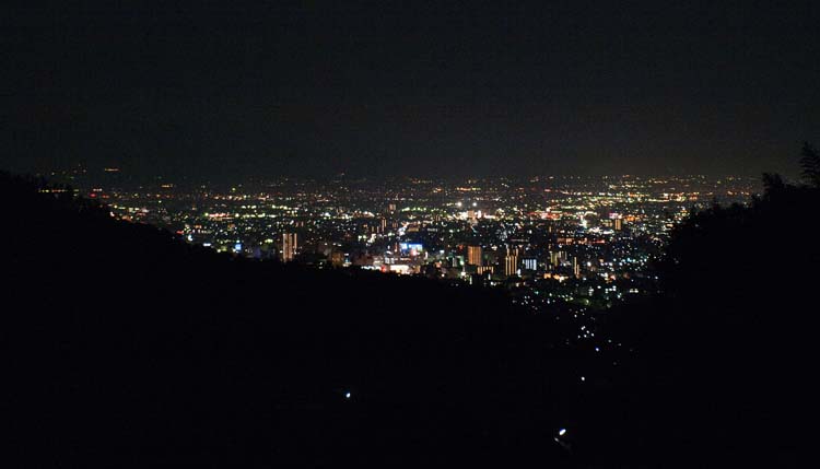 | 積翠寺温泉の部屋、露天風呂からの甲府夜景 |