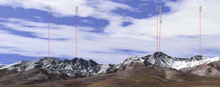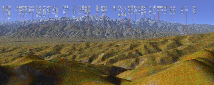 | 鳳凰三山や甲斐駒ヶ岳など (下の山名CG図参照) |
