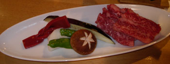 | 左:赤こんにゃく 右:近江牛 |